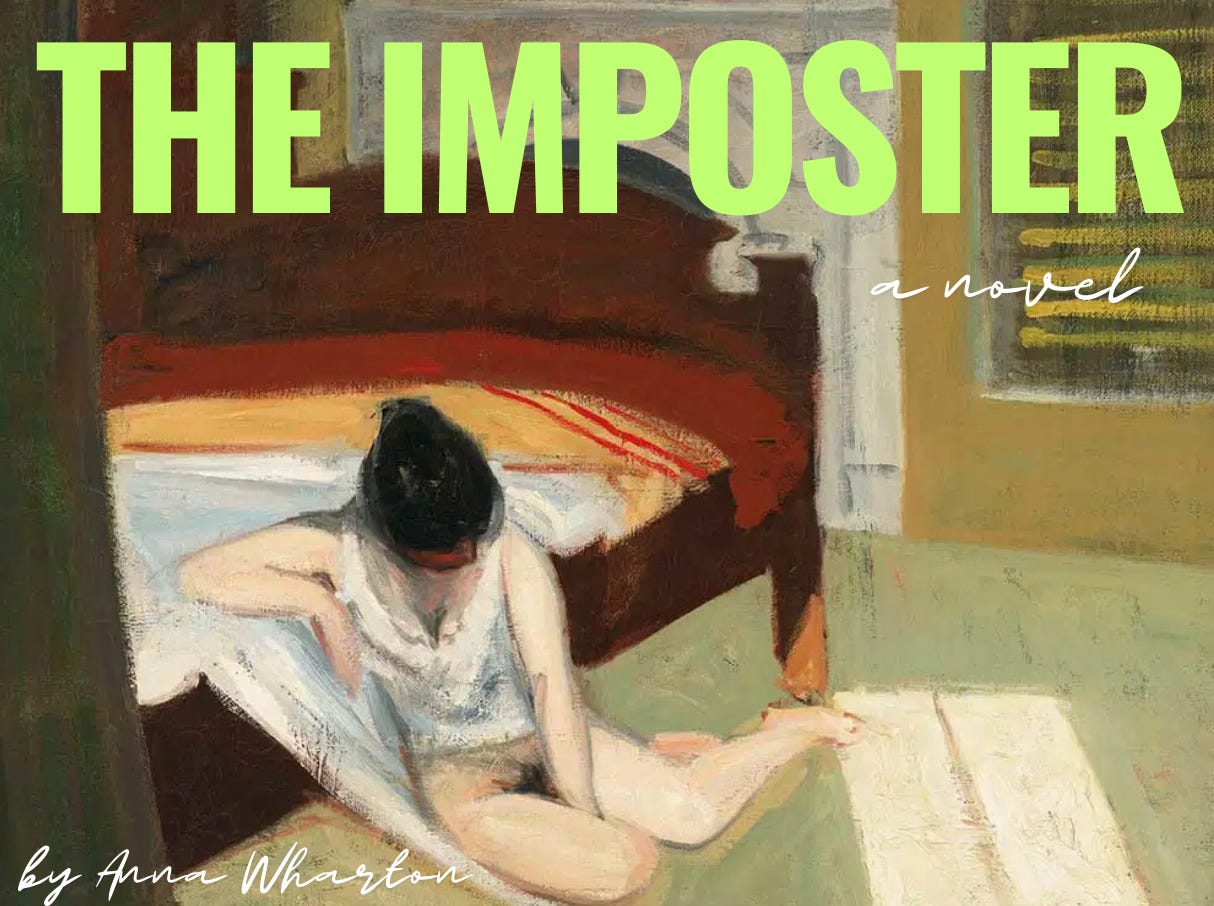 In 2021, my novel, The Imposter, was published by Pan Macmillan in the UK. I’ve decided to give it a new cover for Substack with the help of this 1909 painting by Edward Hopper entitled Summer Interior. It hangs in the Whitney Museum of American Art in New York and I went to see it last year.